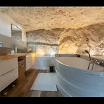 Visitors will enjoy the comfort of a bathroom with towels in Maison Troglodyte apartment. A tub, a separate toilet, and a shower can also be found.