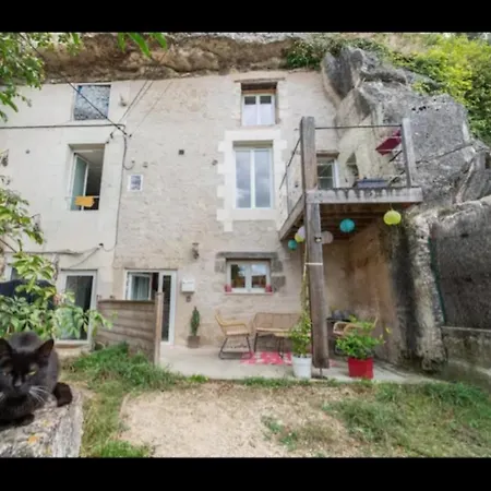 The spacious Maison Troglodyte apartment offers views of the inner courtyard and a location merely 9 minutes' walk from the ginger-stone Baptistere Saint-Jean Baptistery.